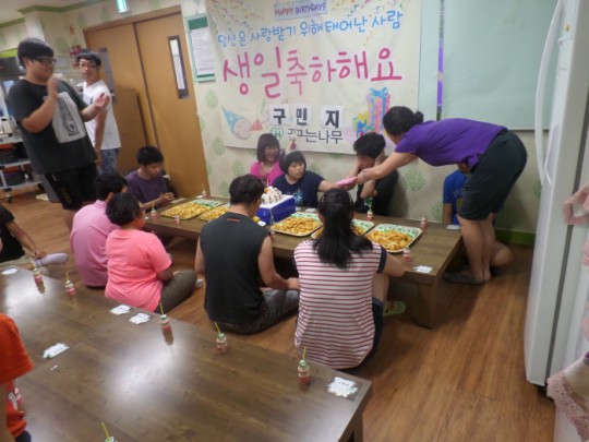 우리센터에서 가장 목소리도 크고 피부도 가장 좋은 민지씨의 생일파티를 하였습니다. 민지씨 생일 축하해요^^ 센터에서 작은 목소리 부탁해요