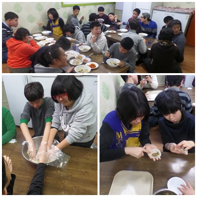 설음식인 만두도 빗고,전도 부치고, 약밥도 직접 만들었으며, 푸짐한 과일, 한과등으로 한상가득 차려진 상을 보고 친구들이 환한 미소로 즐겁게 둘러앉아 음식을 나누어 먹었습니다.
