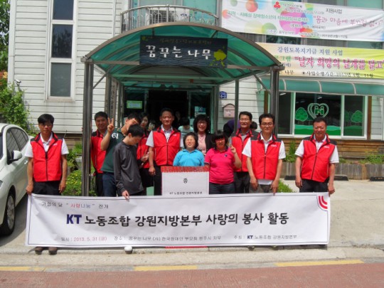 지난 주에 반가운 손님이 오셨습니다. 꿈꾸는나무에 첫번째 발걸음 하신 "KT노동조합 강원지방본부"에서 오신분들과 새로운 인연을 맺게 되었습니다. 센터에 꼭 필요한 선물과 함께! 보내주신 많은 관심과 따뜻한 사랑을 잘 기억하며 건강하고 행복하게 즐겁게 생활하도록 하겠습니다. 감사합니다.~