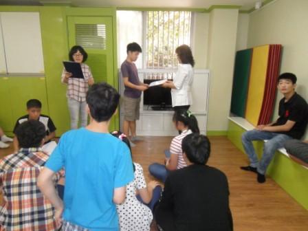 우리 꿈꾸는나무 친구들이 강원도사회복지협의회, 강원도사회복지사협회장의 상장을 수상하는 경사가 있었답니다. 연합캠프가 있던 날 멋지게 시상식을 하려고 했으니..부득히 하게 변경이 되어 센터에서 소박하게 진행하였습니다. 상은 언제가 행복하고 자신을 자랑스럽게 합니다. 또, 더 열심히 해야지 하는 다짐의 계기가 되기도 하지요^^ 우리 꿈꾸는나무 친구들도 그런 다짐을 하는 좋은 시간이 되었습니다.