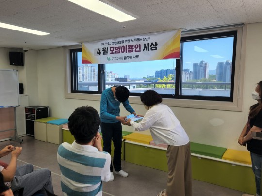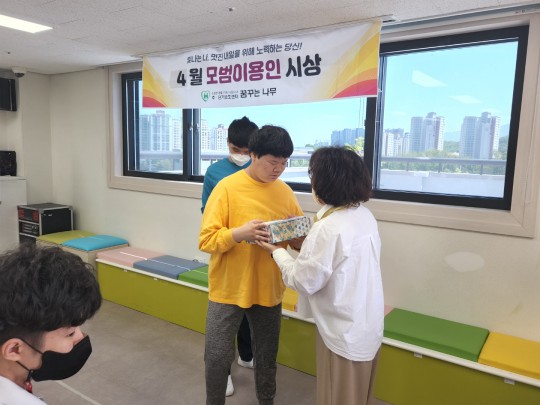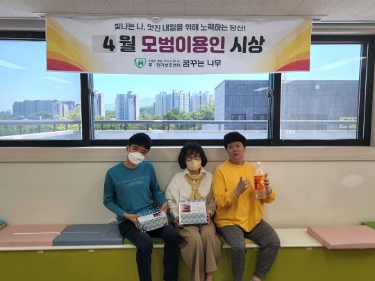 2022년 5월 모범이용인 시상식에서 최경환님, 신혜연님이 수상자로 선정되었습니다. 꿈꾸는 나무의 모범이용인 시상식은 개별지원 목표를 열심히 실천하신 분들께 드리는 상입니다. 두 분의 수상을 진심으로 축하드립니다^^