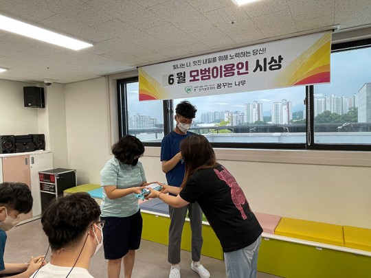 2022년 6월 모범이용인 시상식에서 이창훈님, 이다솜님이 수상자로 선정되었습니다. 꿈꾸는 나무의 모범이용인 시상식은 개별지원 목표를 열심히 실천하신 분들께 드리는 상입니다. 두 분의 수상을 진심으로 축하드립니다^^
