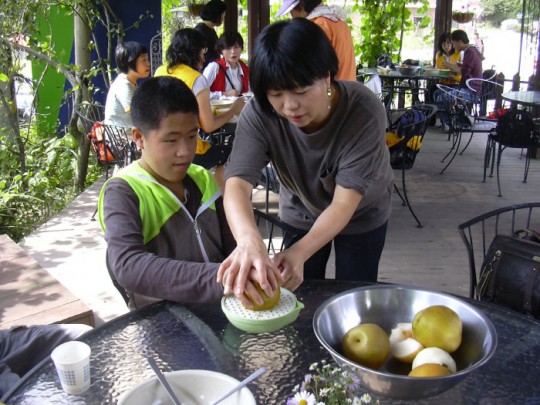 나도 주말학교 갔다왔는데 재미있고 거기서 따먹은 배가 아주 맛이있었어요
