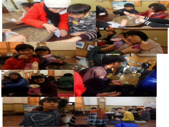 냄새만 맡아도 건강해지는 주머니~ 아름다운 하늘 빛을 가슴에 담는 티셔츠에 쪽물들이기.. 그리고,, 중간 중간 떡먹기^^ 워낙 맛이 좋았답니다.~