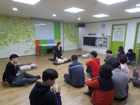 원주소방서와 연계한 심폐소생술 교육이 12월29일 진행되었습니다. 응급상황 발생시 빠른시간내에 대응할 수 있는 응급처치법을 배웠으며 개인별 실습을 통하여 집중력을 높이고 생명에 대한 소중함을 다시한번 일깨우는 시간이었답니다.