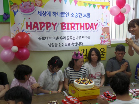 김한울씨의 생일파티가 6월8일 진행되었습니다. 센터 이용인분들께 모범을 보이고 있는 한울씨~ 생일축하를 받으며 환하게 미소지으니 오늘 더욱 예쁩니다^^ 한울씨~ 그룹홈에서 생활할 수 있도록 열심히 노력합시다~ 그리고 진심으로 생일 축하해요~~