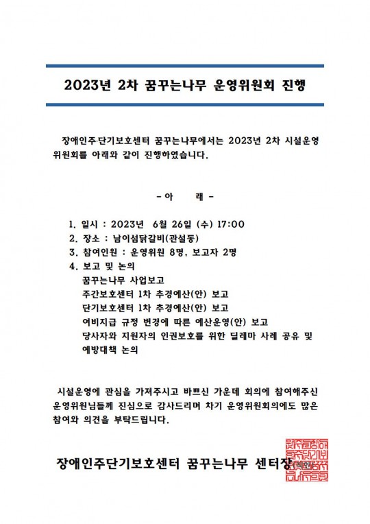 제2차 꿈꾸는나무 운영위원회 진행