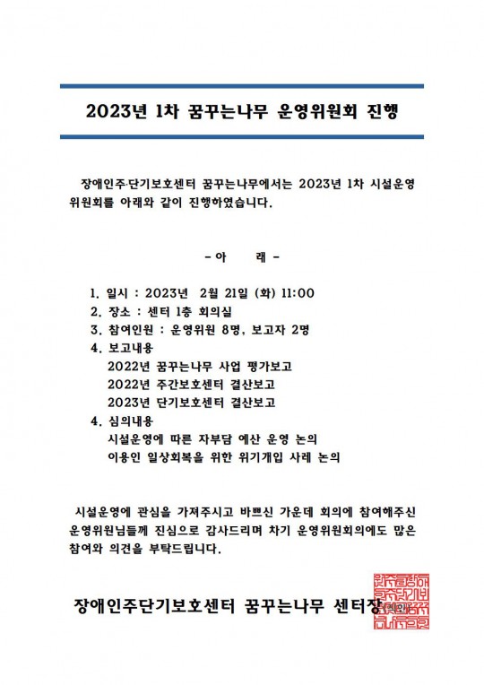 2023년 제1차 시설운영위원회 진행