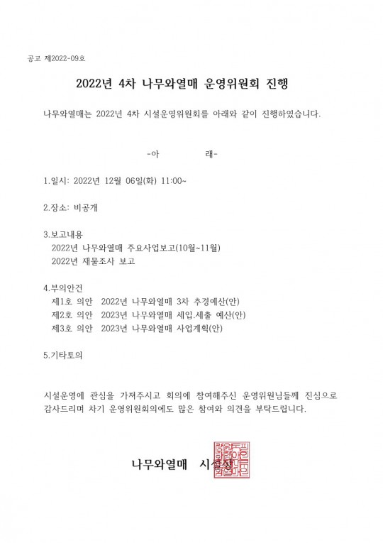 2022년 제 4차 운영위원회 진행