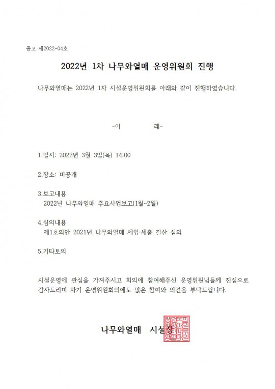 2022년 1차 나무와열매 운영위원회 진행
