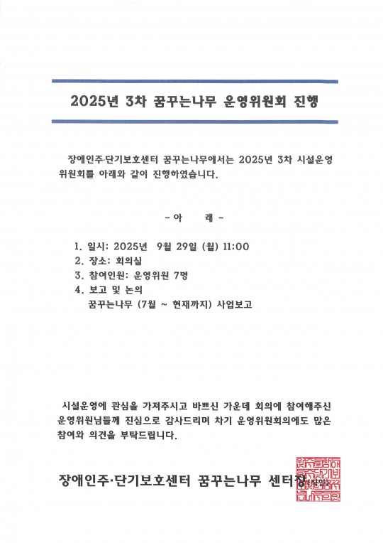 2025년 3차 꿈꾸는나무 운영위원회 진행