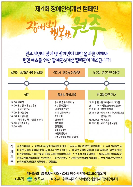 원주시장애인식개선 캠페인이 4월14일(토) 진행예정이었으나