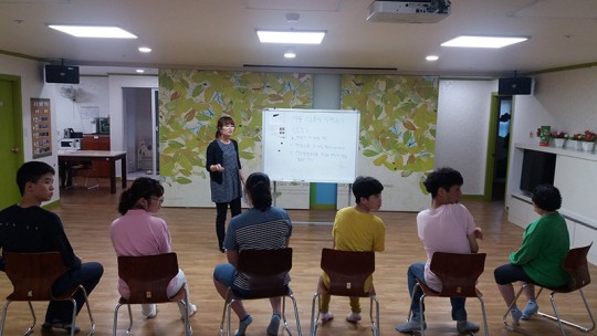 <단기보호> o 일 시 : 2017년 9월 6일(수) o 장 소 : 2층 프로그램실 o 참 석 자 : 단기 이용자 6명 o 회의내용 1. 당월 논의 안건 1) 상반기 자신의 활동 및 생활 뒤돌아보기(잘한 점, 노력할 점) 2) 9~10월에 진행되는 행사에 참여할시 우리의 자세 논의해보기 3) 윤리경영 실천을 위해 우리가 스스로 할 수 있는일 찾아보기 4) 기타토의 o 회의결과 1. 상반기 자신의 활동 및 생활 뒤돌아 보기(잘한 점,노력할 점) -아침 일찍 일어나 학교 갈 준비 잘한점 -학교에서 활동하는 작업활동 잘한점 -핸드폰 사용 시간 줄어든점 -정리정돈 잘한점 -행복공감에서 작업을 잘하여 행복도우미(반장)가 된점 -운동을 꾼준하게 잘하고 있는점 2. 9월~10월에 진행되는 행사에 참여할시 우리의 자세 논의해 보기 -조용하게 행사 진행자의 설명에 따라 활동한다. -차량 탑승시 안전벨트 착용등 안전하게 행사에 참여하여 사고 없이 활동한다. -모든 행사에 소극적인 활동보다는 적극적인 모습으로 활동에 참여한다. 3. 윤리경영 실천을 위해 우리가 스스로 할 수 있는 일 찾아보기 -센터내에서도 쓰레기를 아무곳에 버리지 않고 쓰레기통에 잘 버린다. -사용하지 않는 전기불이나 콘센트를 뽑아 전기를 아낀다. -물의 소중함을 알고 물을 아껴쓴다. 4. 기타 건의사항 기타 건의사항 없음.