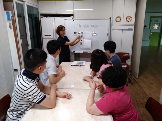 <단기보호> o 일 시 : 2017년 7월 19일(수) o 장 소 : 2층 프로그램실 o 참 석 자 : 단기 이용자 5명 o 회의내용 1. 당월 논의 안건 1) 모범 이용자 선출 2) 여름방학시 가고 싶은곳 정하기 3) 칭찬 게시판 관련 본인의 개별 목표 알아보기 4) 기타토의 o 회의결과 1. 7월 모범 이용자 선출 : 원용경씨 2. 여릅방학시 가고 싶은곳 정하기에 대한 논의 : 중앙시장, 계곡 3. 칭찬게시판 관련 본인의 개별 목표 알아보기 개인별 목표에 대해 각각 설명한 후, 잘 수행하여 칭찬스티커를 받을 수 있도록 함. 4. 기타 건의사항 기타 건의사항 없음.