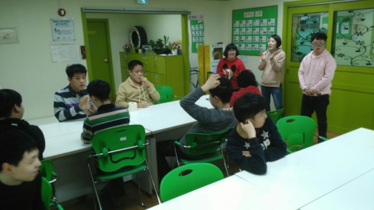 <단기보호> o 일 시 : 2017년 03월 15일(수) o 장 소 : 2층 프로그램실 o 참 석 자 : 단기이용자 o 회의 내용 1. 전월 회의 결과 보고 1)2017년 우리가 지켜야 할 규칙 -외부활동 참여로 인한 차량 탑승시 안전밸트를 맨다 -사무실에 들어오지 않기 -스스로 목욕 잘하기 2)매주 수요일 오후 프로그램 정하기 -컴퓨터 사용하기 3)기타 안건 -없음 2. 당회 논의 안건 1)3월 모범이용자 선출에 대한 논의 2)봄맞이 지역사회 활동시 제일 가고 싶은 곳에 대한 논의 3)스스로 약속한 규칙에 대한 논의 4)기타안건 및 건의사항 o회의 결과 1. 3월 모범이용자 선출 -김하늘 2. 봄맞이 지역사회활동시 제일 가고 싶은 곳에 대한 논의 -산,바다,벚꽃구경,영화관등 다양한 의견 제시하여, 회의후 결정하기로 함. 3. 스스로 약속한 규칙에 대한 논의 -1월 규칙중, '사무실에 들어가지 않기'가 잘 지켜지지 않고 있으므로, 3월 규칙으로 다시 정하기로 함. 4. 기타안건 및 건의사항 -센터 교사가 묻고 의논하며 부탁하는 언어를 사용했으면 좋겠다는 의견과, 2층 식탁을 교체해 주었으면 하는 의견을 제시하여, 최대한 수렴하고 조치하여 질높은 서비스가 제공될 수 있도록 함. <주간보호> o 일 시 : 2017년 03월 15일(수) o 장 소 : 1층 프로그램실 o 참 석 자 : 주간이용자 o 회의 내용 1. 전월 회의 결과 보고 1)2017년 우리가 지켜야 할 규칙 -센터물건사용, 자유시간 2층 프로그램실 이용시 교사의 허락 맡고 행동하기 -사무실에 들어오지 않기 2)매주 수요일 오후 프로그램 정하기 -노래방, 영화감상 3)기타 안건 -없음 2. 당회 논의 안건 1)3월 반장, 부반장 선출에 대한 논의 2)봄맞이 지역사회 활동시 제일 가고 싶은 곳에 대한 논의 3)지역사회활동시 지켜야 할 규칙에 대한 논의 4)기타안건 및 건의사항 o회의 결과 1. 3월 반장, 부반장 선출에 대한 논의 - 반장 : 김지섭 - 부반장 : 조영빈 2. 봄맞이 지역사회활동시 제일 가고 싶은 곳에 대한 논의 -영화관, 체육관등 다양한 의견을 제시하여, 회의후 결정하기로 함. 3. 지역사회활동시 지켜야 할 규칙에 대한 논의 -조용히 하기, 차량이용시 안전벨트 착용하기, 창문열지 않기, 도보이용시 횡단보도 신호 확인하기, 도보 이용시 친구들과 장난하지 않기등 다양한 의견이 있었음. 4. 기타안건 및 건의사항 -없음