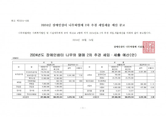 2024년 나무와열매 2차 추경예산 공고