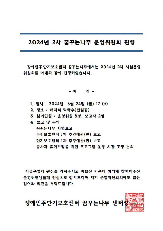 2024년 2차 꿈꾸는나무 운영위원회 진행