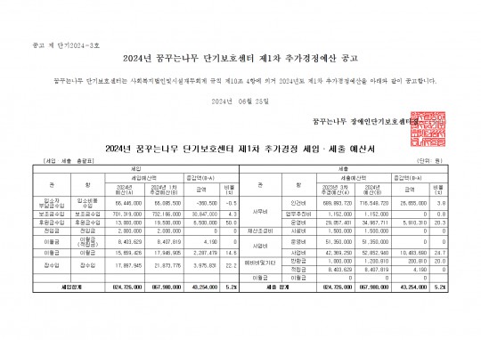 꿈꾸는나무 단기보호센터 2024년 제1차 추가경정예산 공고