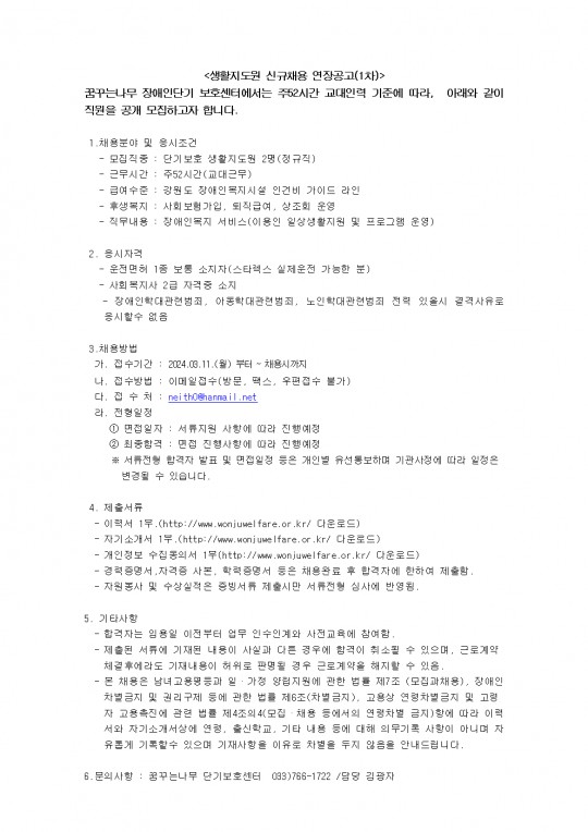 생활지도원 및 조리원 연장공고(1차)
