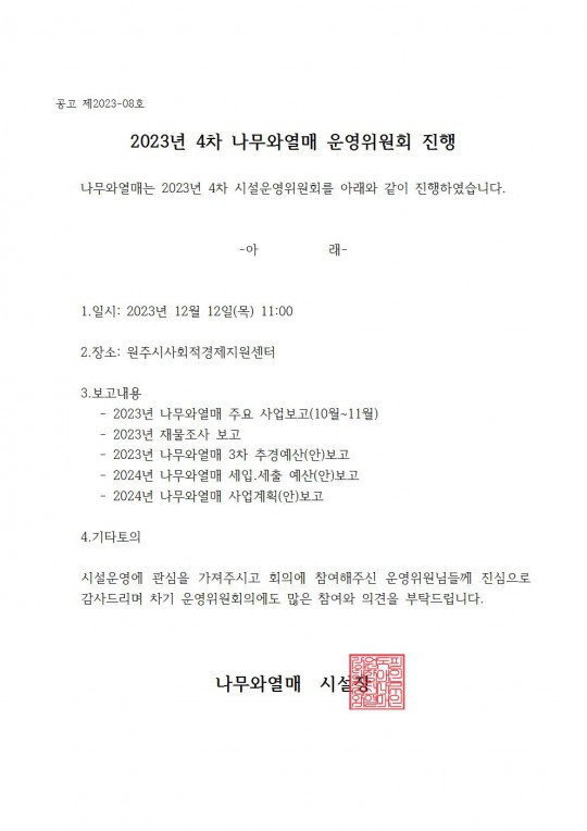 2023년 4차 나무와열매 운영위원회 진행