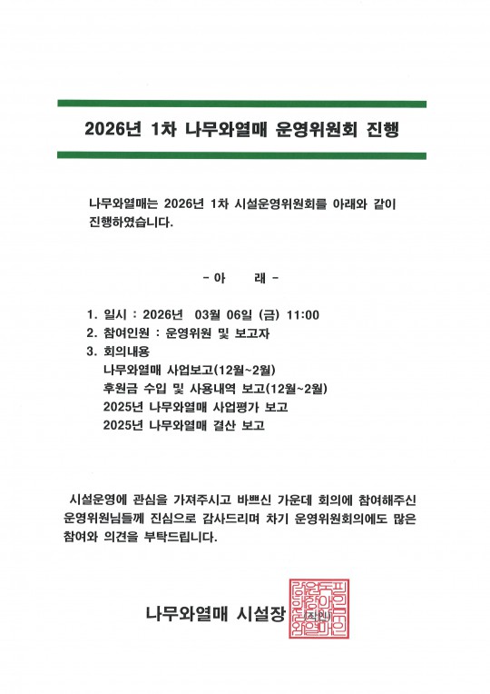 2026년 제1차 나무와열매 운영위원회 진행