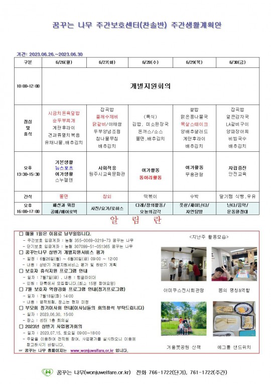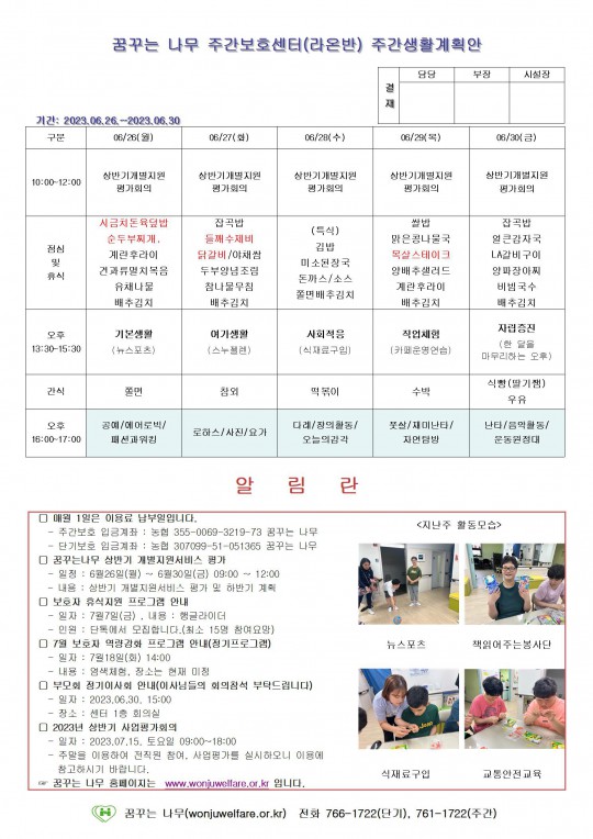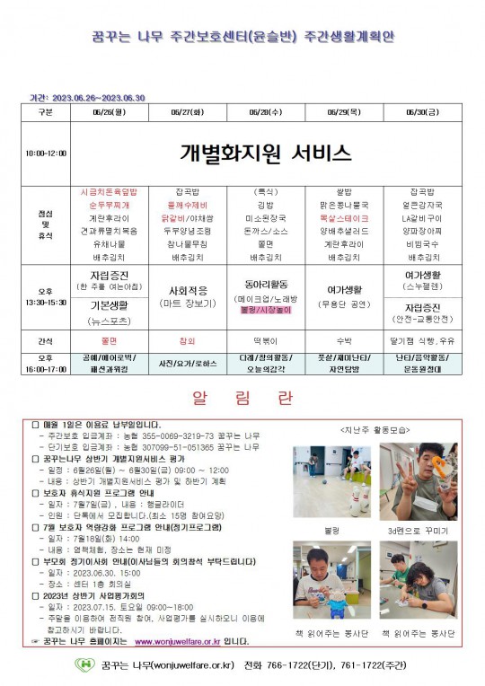 주간계획안(찬솔/하랑/윤슬/라온) 2023.06.26~