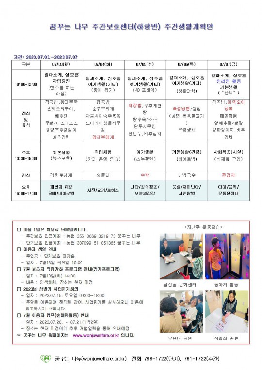 주간계획안(찬솔/하랑/윤슬/라온) 2023.07.03~