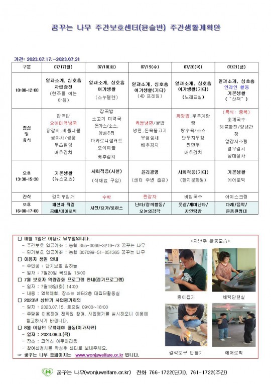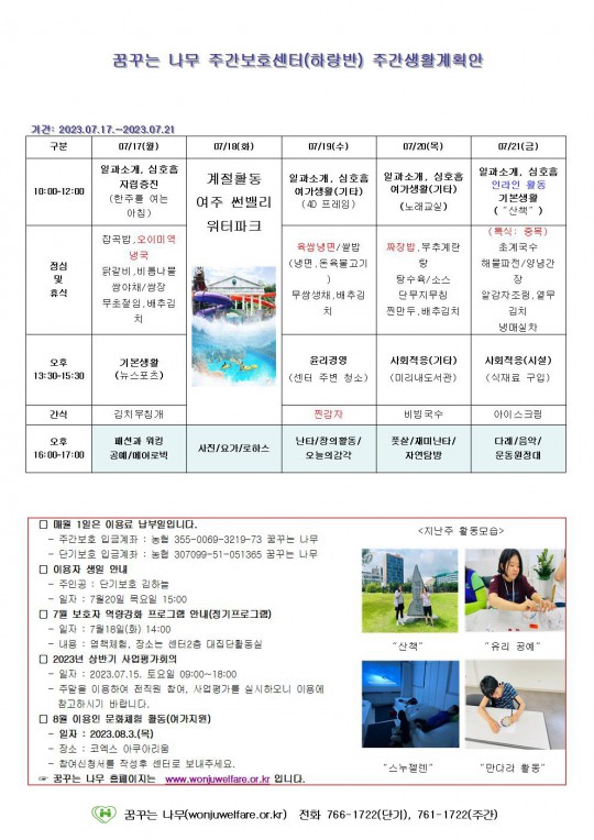 주간계획안(하랑/윤슬/찬솔/라온) 2023.07.17~