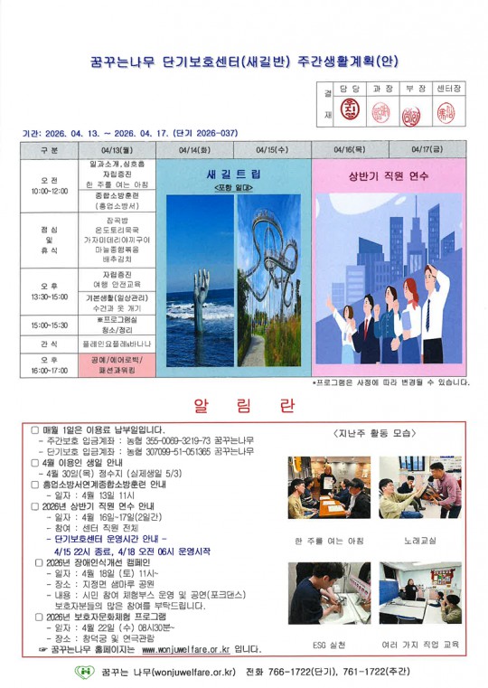 이룸반, 새길반 주간계획안(2026.04.13~04.17)