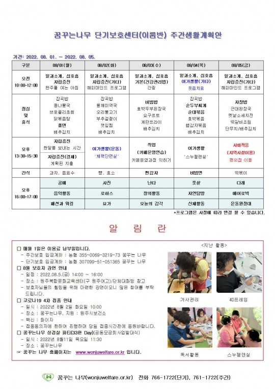 이룸반 주간계획안 (2022년 08월01일~08월05일)
