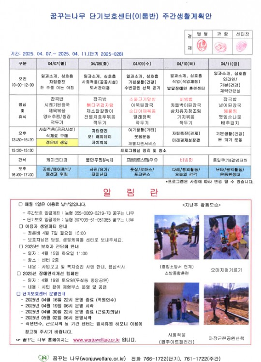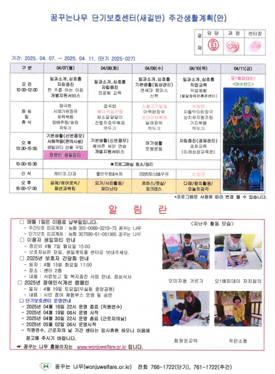이룸반 새길반 주간계획안(2025.04.07~2025.04.11)