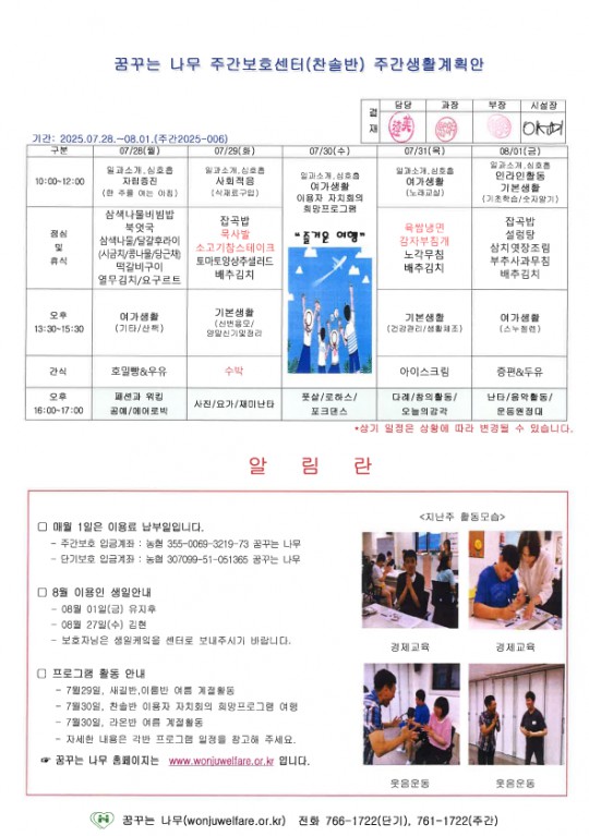 라온, 찬솔, 윤슬, 하랑반 주간계획안입니다.