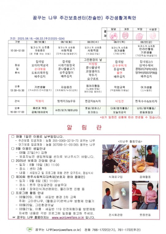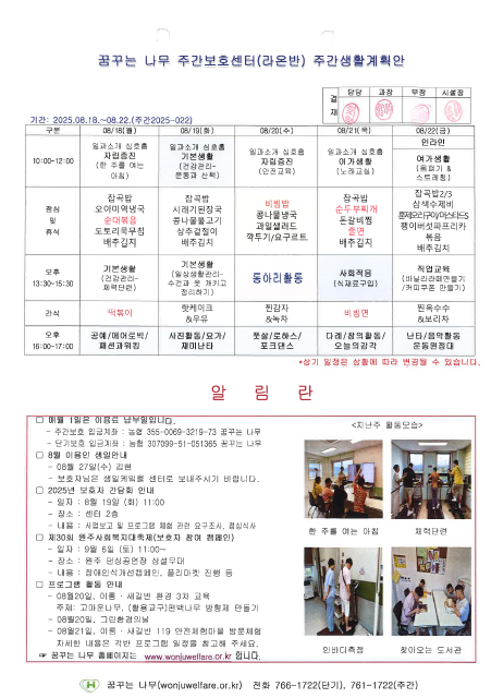 라온, 찬솔, 윤슬, 하랑반 주간계획안입니다.(2025.08.18~)