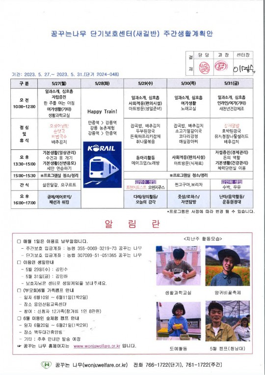 주간계획안(새길, 이룸) 2024.05.27~