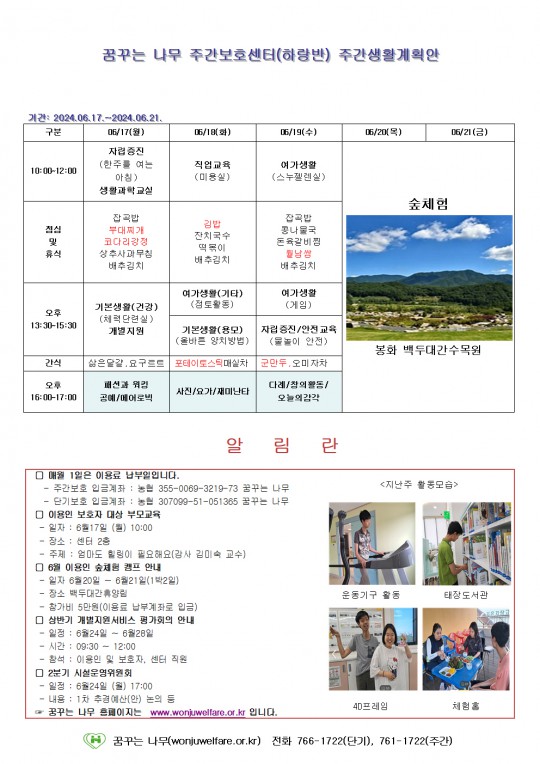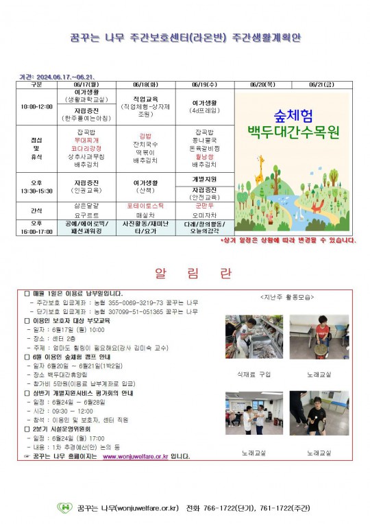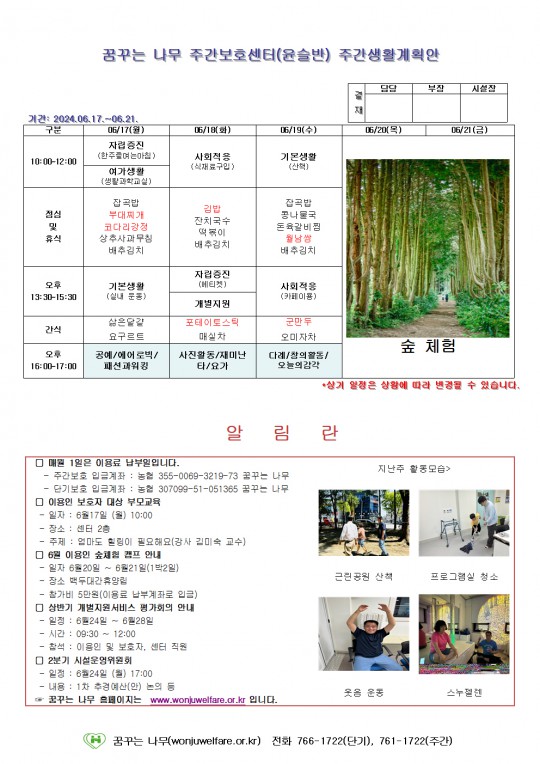 2024.06.17 ~06.21 주간보호 주간계획안입니다.