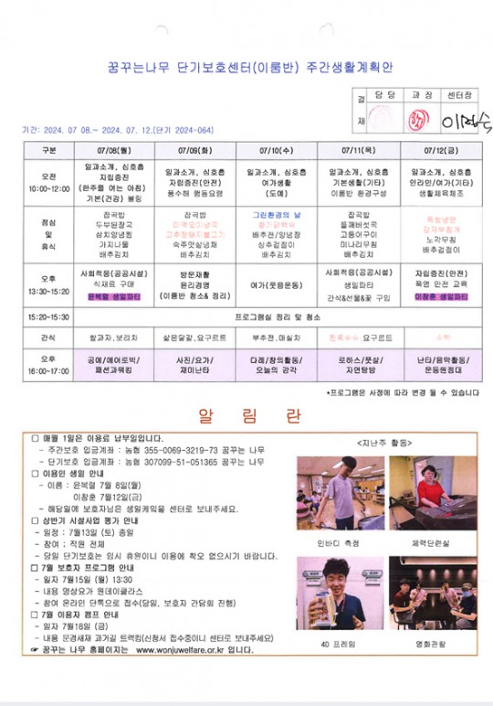주간계획안(새길, 이룸)2024.07.08~