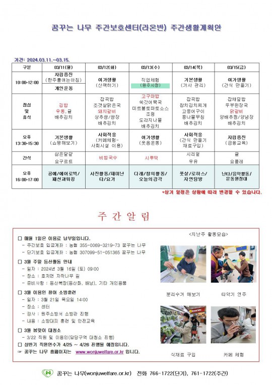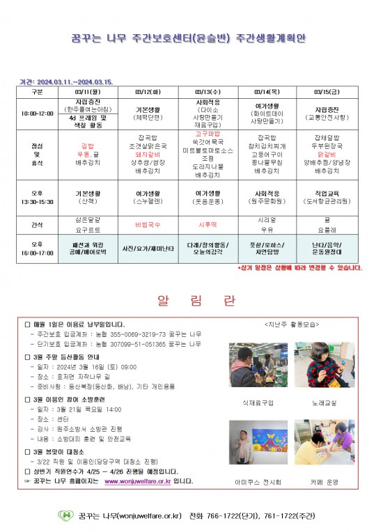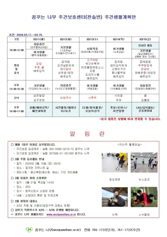 2024.03.11~2024.03.15 주간보호 주간계획안입니다.