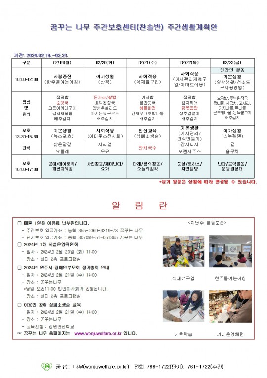 2024.02.19(월) ~ 2024.02.23(금) 주간계획안입니다.