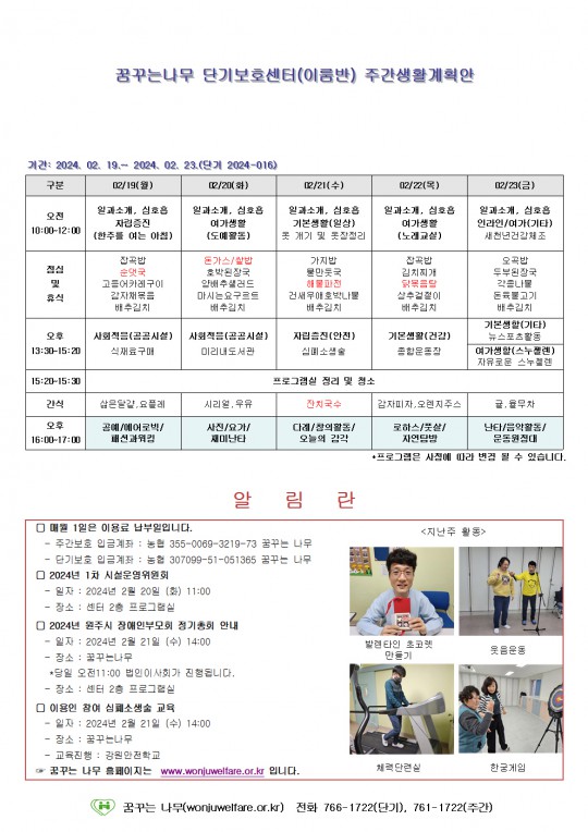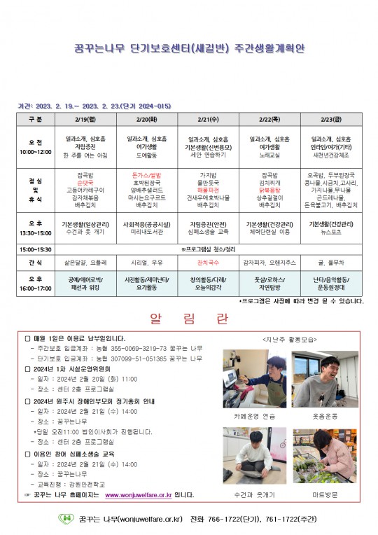 주간계획안(새길, 이룸)2024.02.19~