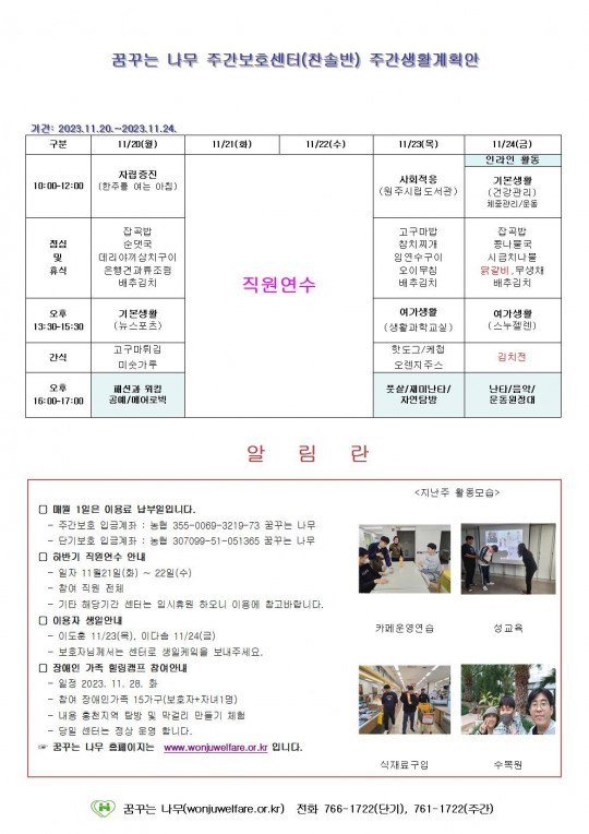 주간계획안(하랑/윤슬/찬솔/라온)2023.11.20~