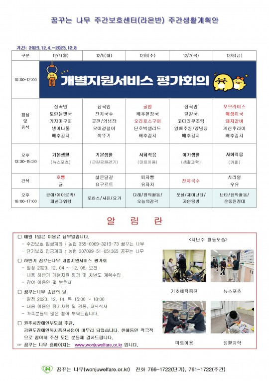 주간계획안(하랑/윤슬/찬솔/라온)2023.12.04~