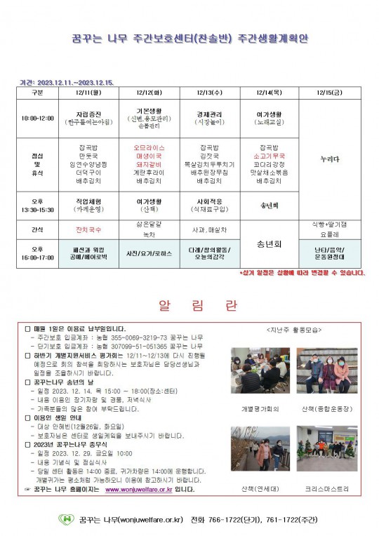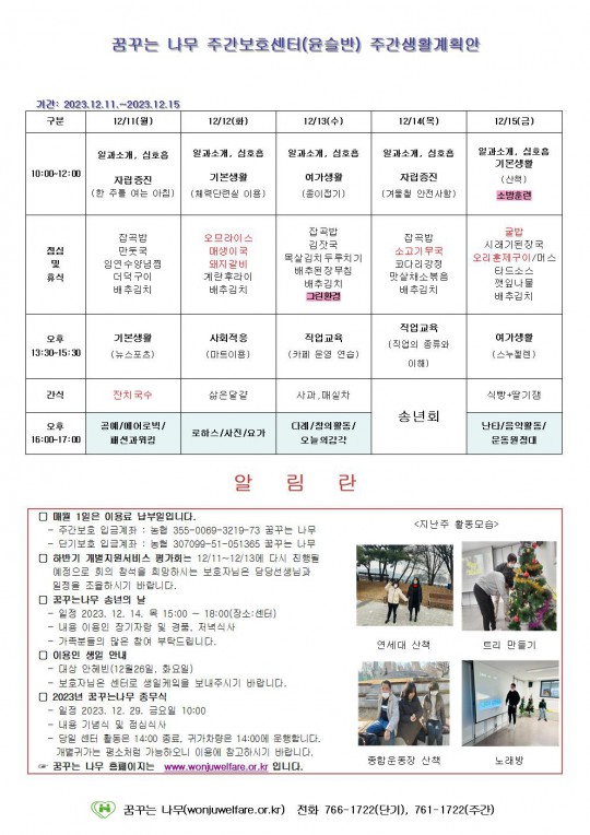주간계획안(하랑/윤슬/찬솔/라온)2023.12.11~
