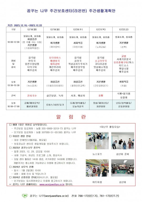 주간계획안(하랑/윤슬/찬솔/라온)2023.12.18~