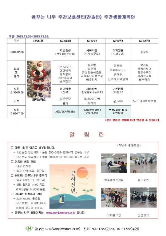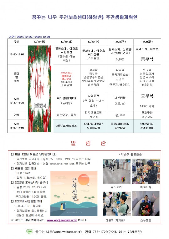 주간계획안(하랑/윤슬/찬솔/라온)2023.12.26~