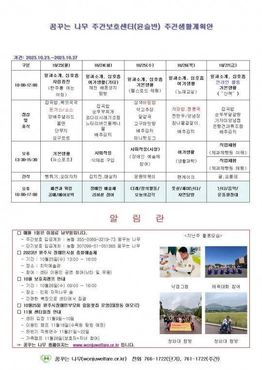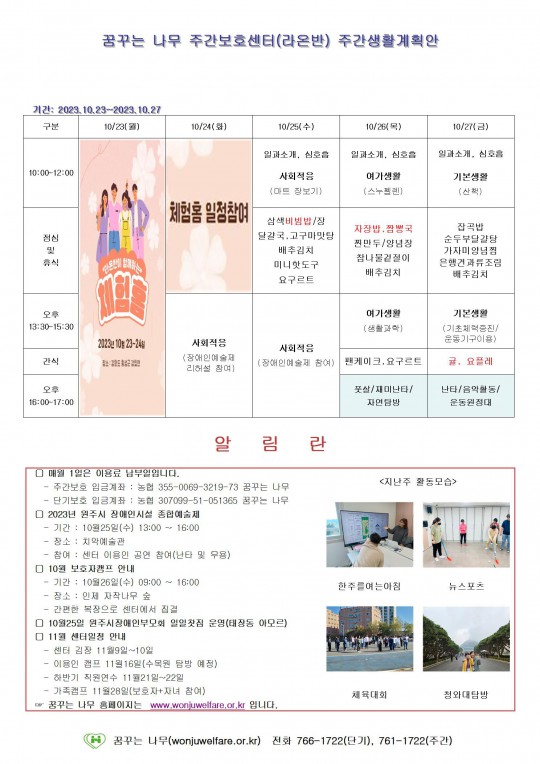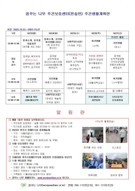 주간계획안(하랑/윤슬/찬솔/라온) 2023.10.23~