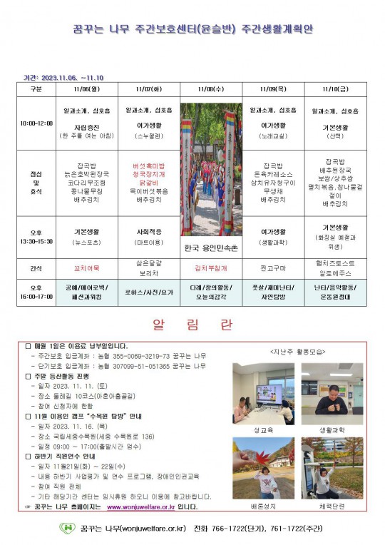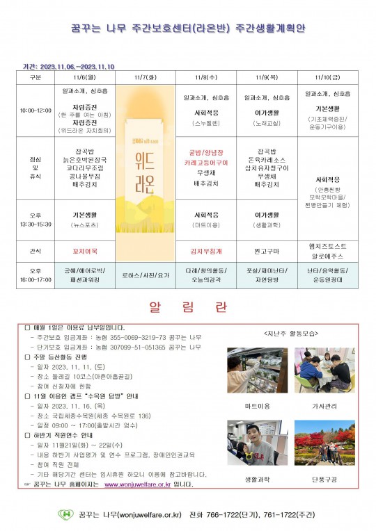 주간계획안(하랑/윤슬/찬솔/라온)2023.11.06~
