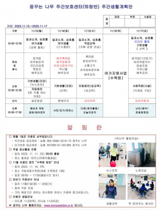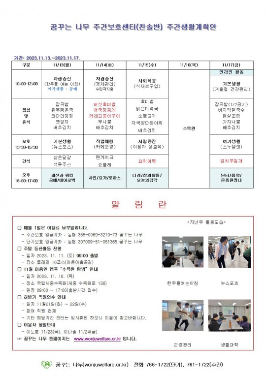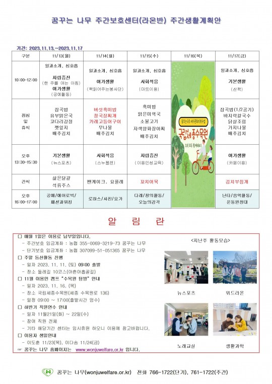 주간계획안(하랑/윤슬/찬솔/라온)2023.11.13~
