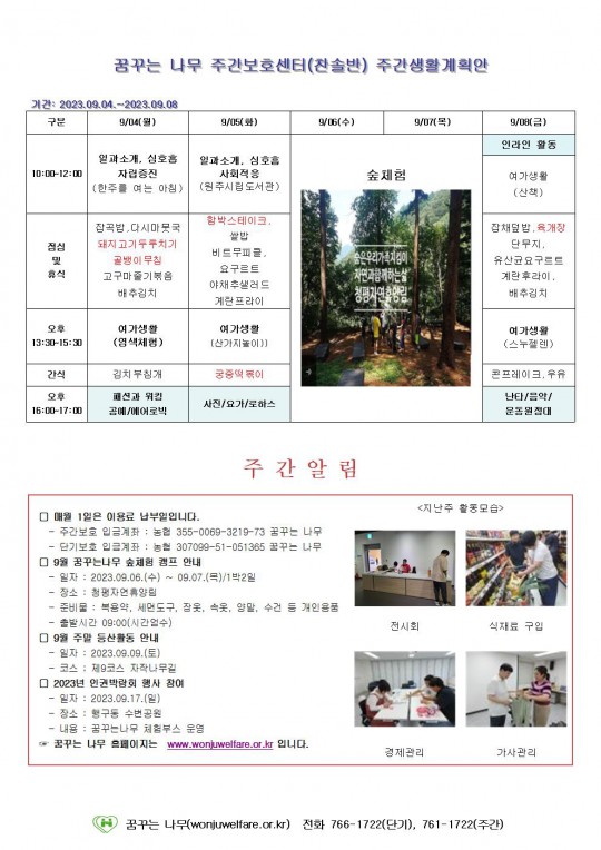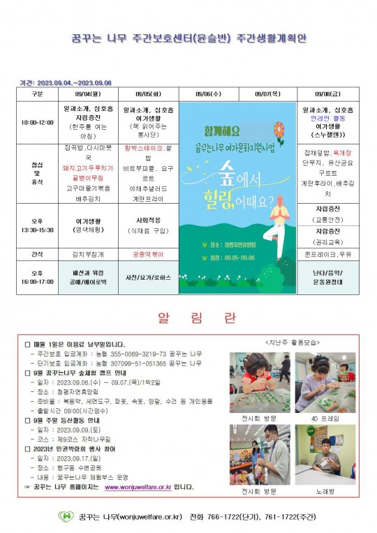 주간계획안(하랑/윤슬/찬솔/라온) 2023.09.04~