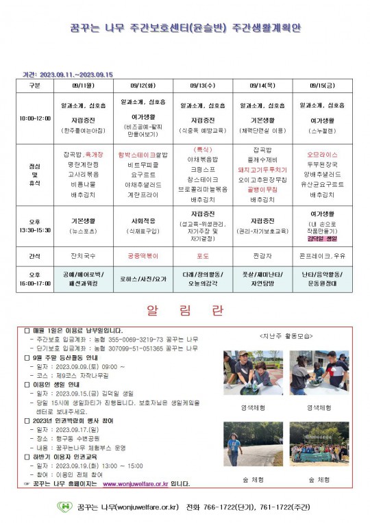 주간계획안(하랑/윤슬/찬솔/라온) 2023.09.11~